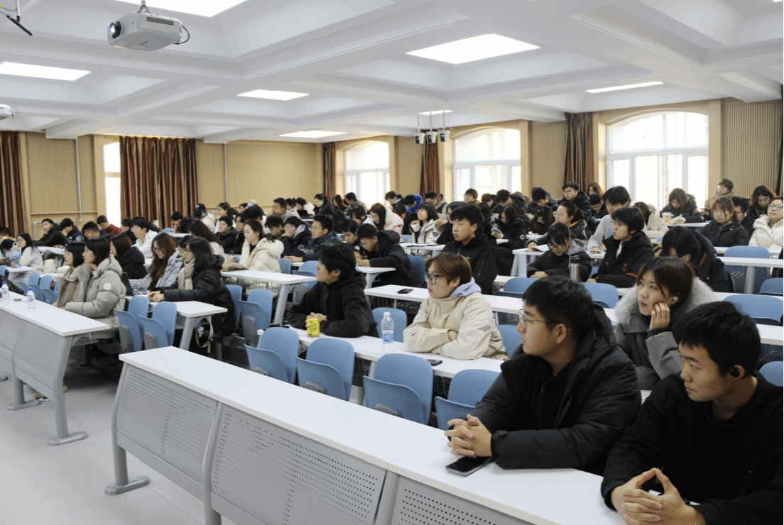 讲座中,赵教授结合自身经历,以幽默生动的实例阐释了语言实践与文化适应的重要性,并鼓励学子充分利用学院双语双文化环境,主动拓宽国际视野。最后,赵教授寄语全体学子,要以海纳百川的胸怀拥抱多元世界,在纽瓦克学院积蓄成长力量,努力成为连接中国与世界的“桥梁”。参会现场师生聆听专注,积极思考。